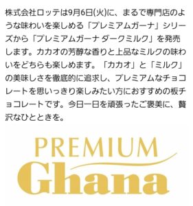 今日たまたま見かけた記事でガーナチョコレートの『プレミアム』が出るそうです!!