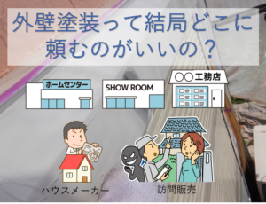 そろそろ外壁塗装をしなきゃって考えている人も多いと思いますが、いざ頼もうと思ってもどこに頼んでいいかわからないという言葉をよく聞きます。建てたハウスメーカーがいいのか、最近はホームセンターも外壁塗装をしていますし、訪問してくる業者もいると思います。そこで今回は一体どこに頼むのが良いのかそれぞれのメリット・デメリットを交えながら紹介したいと思います。