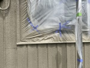 一方デメリットとしては、吹き付けは広範囲に広がるので養生をしっかりしないといけないこと。またローラーと比べると飛散しやすく風が強い日は注意が必要です。特に溶剤系の塗料では臭いが拡がるので向いていません。また狭い場所(塀や隣の家との隙間が狭い)では垂直に吹けないので塗れない部分が出てきます。同じ理由で足場の境目は平行に吹き付けできないのでムラになりやすいという欠点もあります。またコンプレッサーという機械を使うので音がしますので近隣の方の理解も必要になるかもしれません。さらに業者目線で言えば、機材に費用が掛かりますしローラーのように使った後捨てるわけではないので使い終わった後のメンテナンスが必要だったりします。